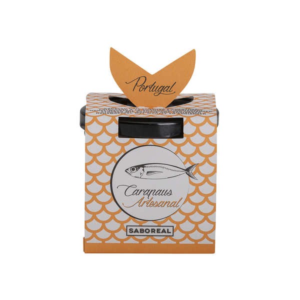 PRODUCTION ARTISANALE CERTIFIÉE Petiscada Saboreal de Chinchard avec Carottes et Coriandre (100g) Ingrédients : Chinchard (51%), Carotte (15%), Oignon, Jus de Citron, Coriandre (5%), Huile d'Olive Vierge, Ail, Sel, Poivre Noir, Agar-Agar (gélifiant) Allergènes : Chinchard Durée de conservation : 2 ans Étiquettes et informations nutritionnelles en 5 langues (Portugais, Français, Anglais, Allemand et Néerlandais). Chaque conserve contient un poids net de 100 g. Conserver dans un endroit sec, à température ambiante, à l'abri de l'exposition solaire.