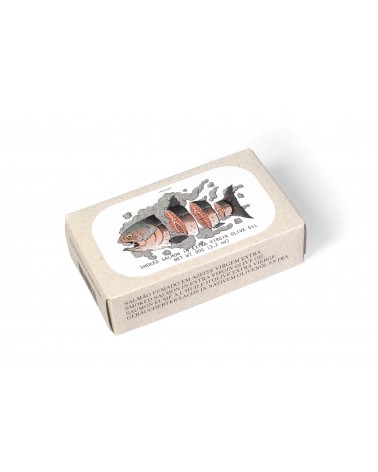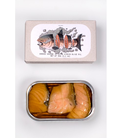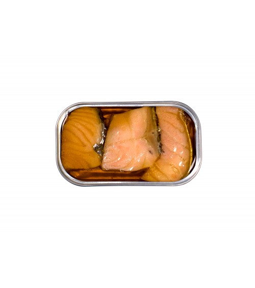 Ingrédients: Saumon (77,8%), huile d’olive extra vierge (20,4%), (fumée naturelle) et sel.