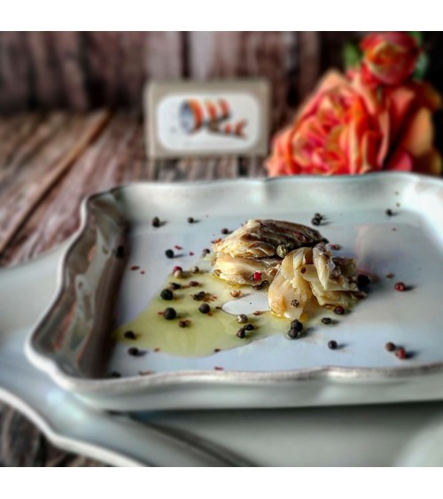 Morue à l'huile d'olive et à l'ail ! Parler de la morue, c'est se plonger dans une tradition bien ancrée au Portugal. Pendant longtemps, seule la morue salée et séchée méritait toute l'attention. Mais peu à peu, l'engouement pour les conserves a commencé à se développer. La morue pêchée dans l'Atlantique Nord-Est que nous utilisons pour préparer nos conserves est associée à de l'huile d'olive et de l'ail, ce qui permet de conserver la combinaison traditionnelle de ce plat portugais. Morue à l'huile d'olive et à l'ail une tradition portugaise en boîte.