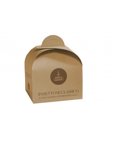 Panettone artisanale enrichie de farine de blé sicilienne, de cubes d’oranges frais confdérés et de raisins secs les plus fins aromatisés avec du vin sucré parfumé Malvasia delle Lipari.